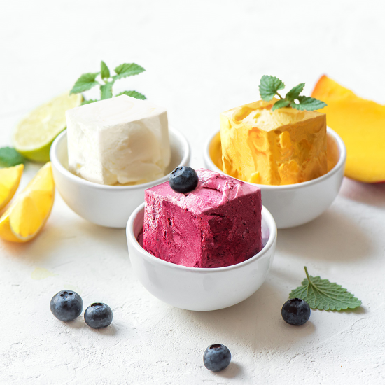 濃厚な風味:乳脂肪分が少なく、空気含有量が少ないため、素材本来の味がダイレクトに感じられます。